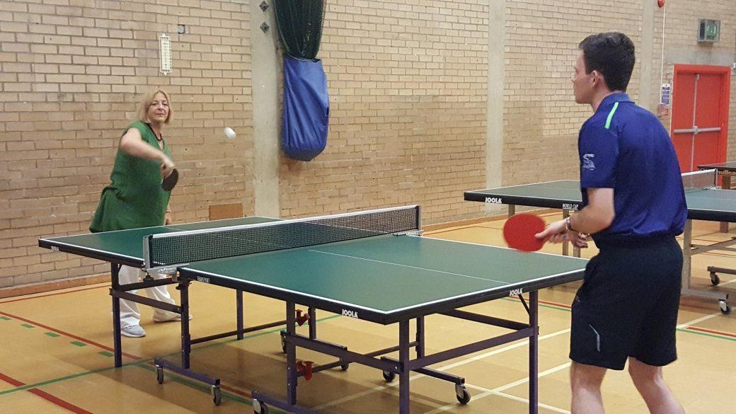 Linda, a player in her youth, stayed with us for our first hour and we even got her playing for a bit…a wicked backhand I must say!